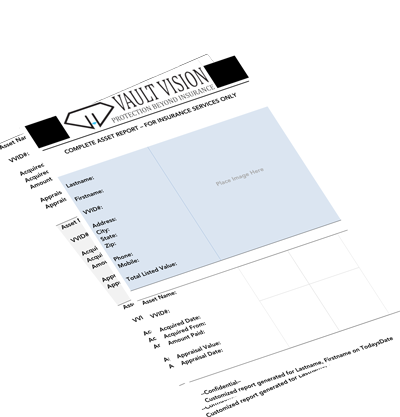 When you list your asset with VaultVision, we provide all the information need to replace your item as quickly as possible. Our reports are certified and accurate, such that insurance adjusters and apprasers can rely on the information.